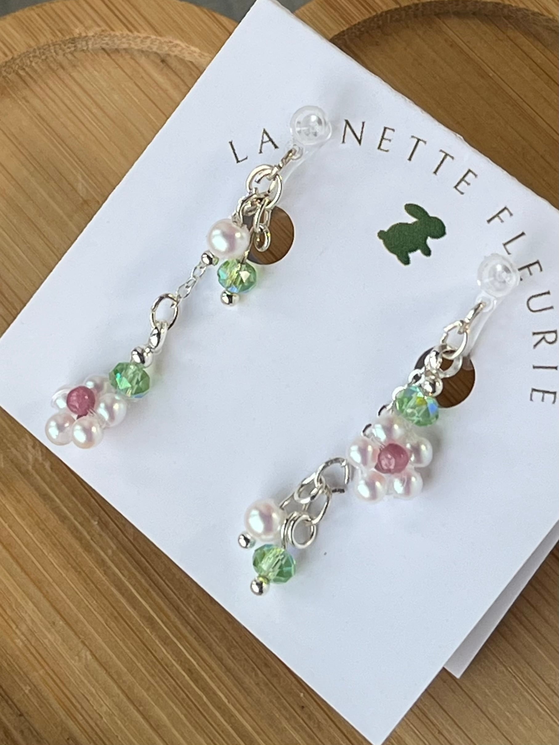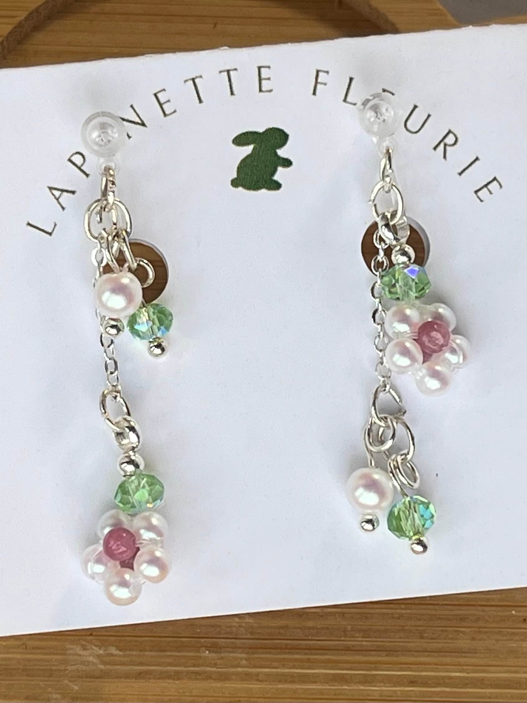 小さな花が揺れる、上品で可憐なノンホールピアス。